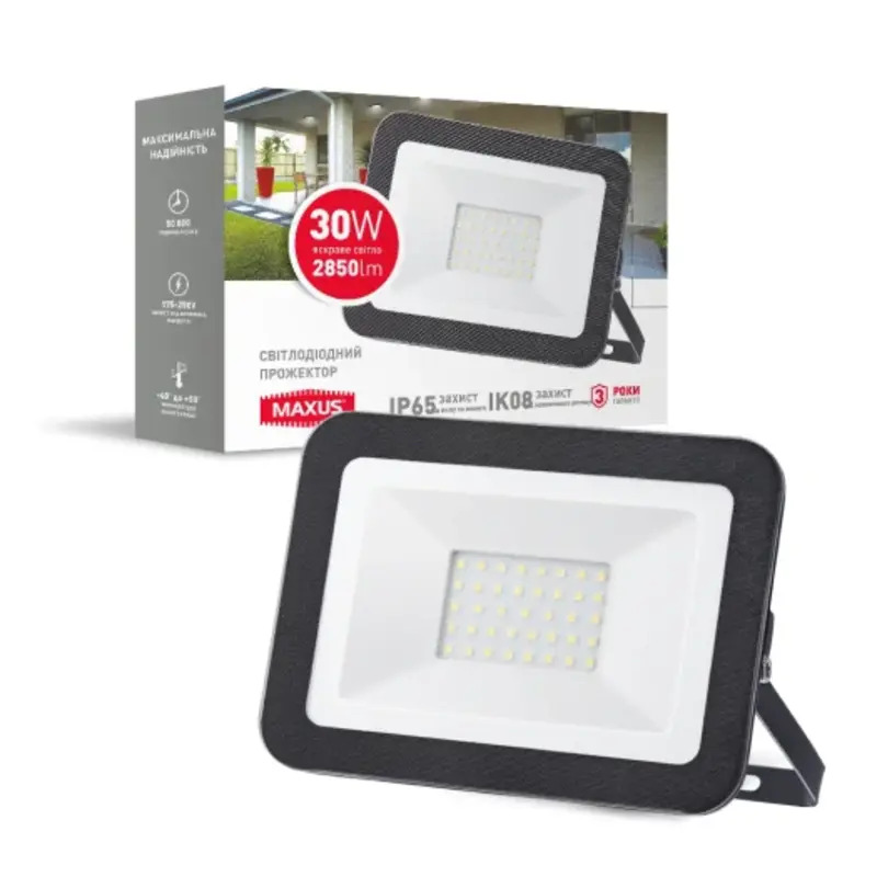 maxus, fl-01, прожектор, led прожектор, 30w, 5000k, феное́т floodlight, зовнішнє освітлення, фасадне освітлення, дворова підсвітка, гараж, стоянка, вуличне освітлення, IP65, LED floodlight, освітлення фасаду, outdoor light, energy efficient light, освітлення дачі, освітлення будинку