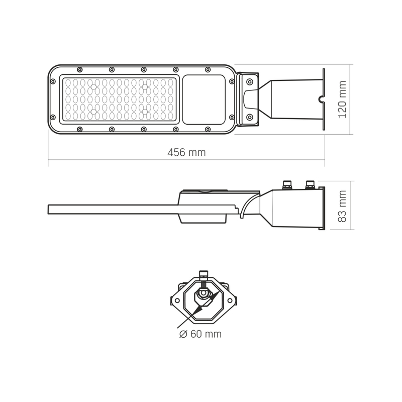 Корпус виготовлено з алюмінієвого сплаву, що забезпечує ефективне відведення тепла та захист від корозії. Завдяки ступеню герметичності IP65, ліхтар стійкий до пилу, дощу та перепадів температур. Надійний драйвер стабілізує напругу живлення в діапазоні 220–240 В, запобігаючи миготінню й продовжуючи термін служби світлодіодів.